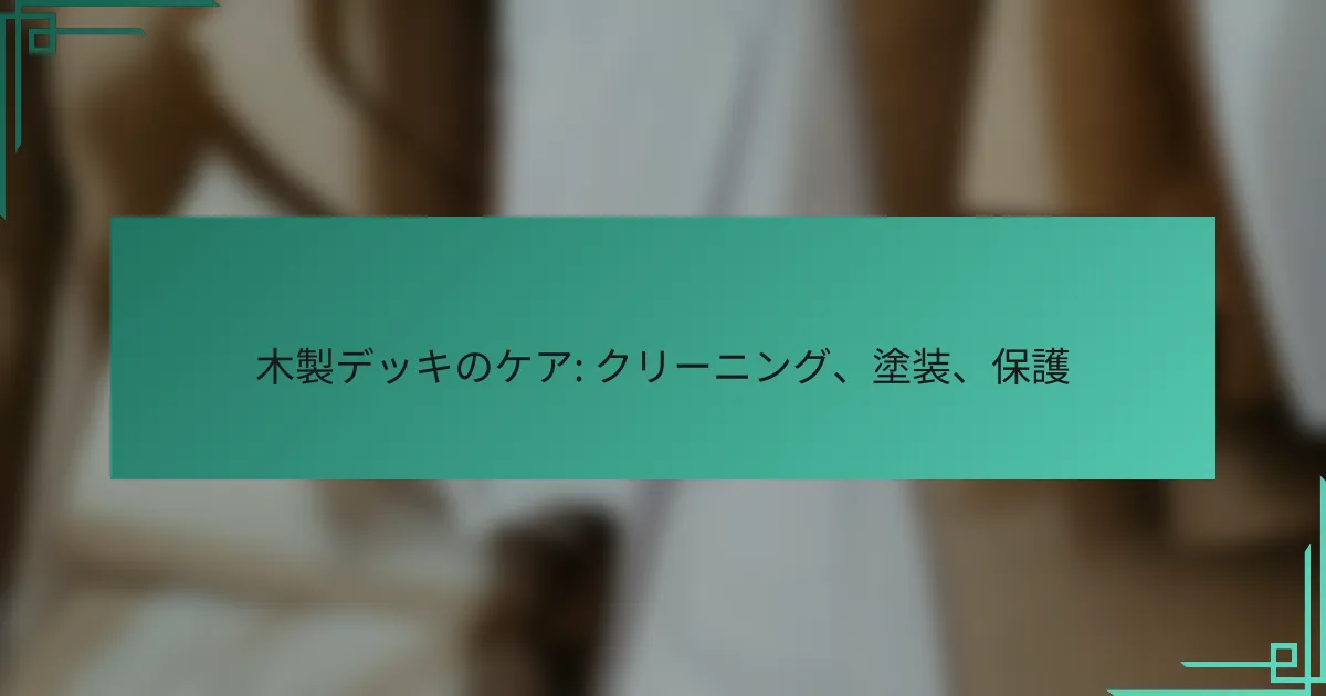 木製デッキの保護方法は、適切な保護剤を使用し、定期的にメンテナンスを行うことです。これにより、デッキの耐久性を高め、外的要因からのダメージを防ぐことができます。