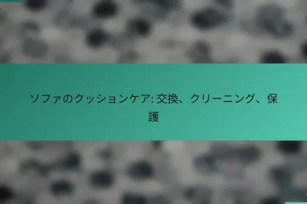 ソファのクッションケアは、クッションの交換、クリーニング、保護を通じて、快適さと美観を維持するための重要な手段です。クッションの見た目や快適さが損なわれた際には、適切なタイミングでの交換が推奨されます。また、クリーニング方法は素材や汚れの種類によって異なるため、状況に応じた手入れが必要です。 ソファのクッションケアとは何ですか? ソファのクッションケアは、クッションの交換、クリーニング、保護を含む一連の手入れ方法です。これにより、クッションの寿命を延ばし、快適さと美観を保つことができます。 ソファのクッションの定義と役割 ソファのクッションは、座る際の快適さを提供するための重要な要素です。クッションは、体重を分散させ、リラックスした姿勢をサポートします。 また、クッションはソファのデザインを引き立て、インテリアの一部としての役割も果たします。色や素材によって、部屋の雰囲気を大きく変えることができます。 クッションの素材とその特性 ソファのクッションには、主にウレタンフォーム、フェザー、ポリエステルなどの素材が使用されます。ウレタンフォームは弾力性があり、耐久性に優れています。 フェザーは柔らかく、贅沢な感触を提供しますが、定期的な手入れが必要です。ポリエステルは軽量で、手入れが簡単ですが、通気性が劣ることがあります。 クッションケアの重要性 クッションケアは、快適さと見た目を維持するために不可欠です。定期的なクリーニングや交換を行うことで、アレルゲンや汚れの蓄積を防ぎます。 また、適切な保護を施すことで、日焼けや摩耗からクッションを守ることができます。これにより、長期間にわたって美しい状態を保つことが可能です。 ソファのクッションを交換するタイミングはいつですか? ソファのクッションは、見た目や快適さが損なわれたと感じたときに交換するのが理想です。一般的には、使用頻度や劣化の程度に応じて、数年ごとに見直すことが推奨されます。 劣化の兆候 クッションの劣化は、目に見える形で現れます。例えば、表面がひび割れたり、色あせたりすることがあります。また、クッションが沈んでしまい、元の形状を保てない場合も交換のサインです。 さらに、クッションの中身が偏っている場合や、触ったときに硬さを感じるようになったら、劣化が進んでいる可能性があります。これらの兆候を見逃さないことが重要です。 使用頻度による交換の目安 ソファの使用頻度によって、クッションの交換時期は大きく異なります。例えば、毎日使用する場合は、2年から3年ごとに交換を検討するべきです。一方、週末のみ使用する場合は、5年から7年持つこともあります。 また、ペットや子供がいる家庭では、より早めの交換が必要になることがあります。これらの要因を考慮して、定期的にクッションの状態を確認しましょう。 交換のメリットとデメリット クッションを交換するメリットは、快適さの向上と見た目のリフレッシュです。新しいクッションは、サポート力が高く、座り心地が改善されるため、長時間の使用でも疲れにくくなります。 一方、デメリットとしては、コストがかかることや、環境への影響が挙げられます。特に高品質なクッションは価格が高くなるため、予算を考慮する必要があります。また、廃棄物の問題も考慮し、リサイクル可能な素材を選ぶことが望ましいです。 ソファのクッションをどのようにクリーニングしますか? ソファのクッションをクリーニングする方法は、素材や汚れの種類に応じて異なります。一般的には、家庭での手入れとプロによるクリーニングの二つの選択肢があります。 クリーニング方法の種類 ソファのクッションのクリーニング方法には、主にドライクリーニング、ウォッシャブル、スチームクリーニングの3つがあります。ドライクリーニングは、特にデリケートな素材に適しており、化学薬品を使用して汚れを落とします。ウォッシャブルは、洗濯機で洗えるタイプのクッションで、家庭で簡単に手入れが可能です。 スチームクリーニングは、熱蒸気を使って深い汚れを除去する方法で、特にアレルギー対策に効果的です。これらの方法を選ぶ際は、クッションの素材と汚れの程度を考慮することが重要です。 自宅でできるクリーニング手順 自宅でのクリーニングは、まずクッションのカバーを外し、洗濯表示に従って洗濯機で洗います。洗剤は中性洗剤を使用し、低温で洗うことをお勧めします。カバーが洗えない場合は、布用のクリーナーを使って部分的に汚れを落とします。 次に、クッション本体は、掃除機でほこりやゴミを取り除き、必要に応じてスチームクリーニングを行います。最後に、しっかりと乾燥させることが大切です。湿気が残ると、カビの原因になります。 プロによるクリーニングの利点 プロによるクリーニングは、専門的な技術と機材を使用するため、家庭では難しい深い汚